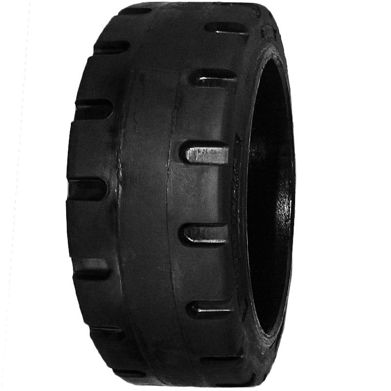 Бандажные (массивные) шины устанавливаются преимущественно на складских штабелерах и вилочных погрузчиках для работ в условиях относительно ровной площадки или складского помещения. Этот тип шины представляет из себя слой литой вулканизированной резины толщиной от 6 до 10см на стальном кольце разной ширины. Бандажные шины используются также в качестве катков для вращения барабанов в определенных технологических процессах, а также  на рол трейлерах в морских портах. Замена старых шин на новые происходит с помощью пресса,в процессе замены выпрессовывается старая и запрессовывается новая шина на ступицу погрузчика. Преимуществом этого типа шин является долговечность эксплуатации и стойкость от разрушения рабочего слоя, однако есть и недостатки, один из них — это слишком жесткая конструкция, связывающая колеса с самим погрузчиком, что влияет на состояние узлов управляемого моста.  Бандажные шины предлагаются в трех вариантах: гладкие (smooth); с боковым протектором (ML); и полным протектором ( J Lug ). При подборе бандажных шин для своего погрузчика, рекомендуем на ведущий мост устанавливать шины с протектором для лучшего  контакта и сцепления с поверхностью площадки. Продукция соответствует стандартам: CCC, ISO, E-MARK, DOT, SON.