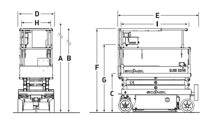 Ножничный электрический подъемник SkyJack SJIII3219 с высотой подъема 8 м и грузоподъемностью 249 кг.